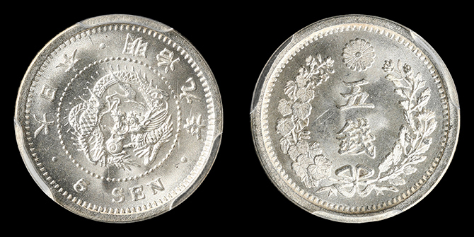 197 竜5銭 明治9年 PCGS(MS65) 未〜完未 16,000円