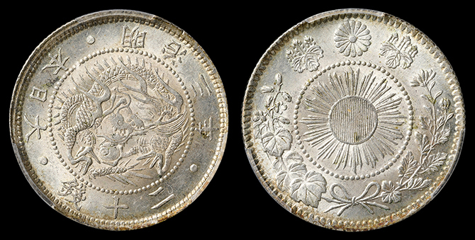 201 竜10銭 明治20年 PCGS(MS66) 一部トーン 未〜完未 16,000円