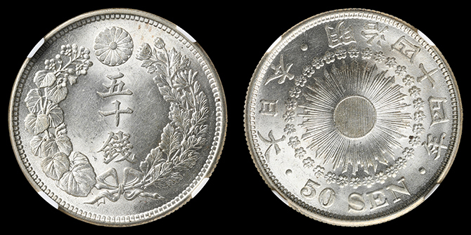 215 旭日50銭 明治44年 NGC(MS63) 準未+〜未 11,500円
